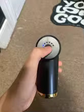 A massage gun featuring a digital LED display panel that shows intensity levels and battery status. The handle includes buttons for power, gear adjustment, hot compress mode, and charging indicators. The layout highlights ease of use and precise control during massage sessions.
